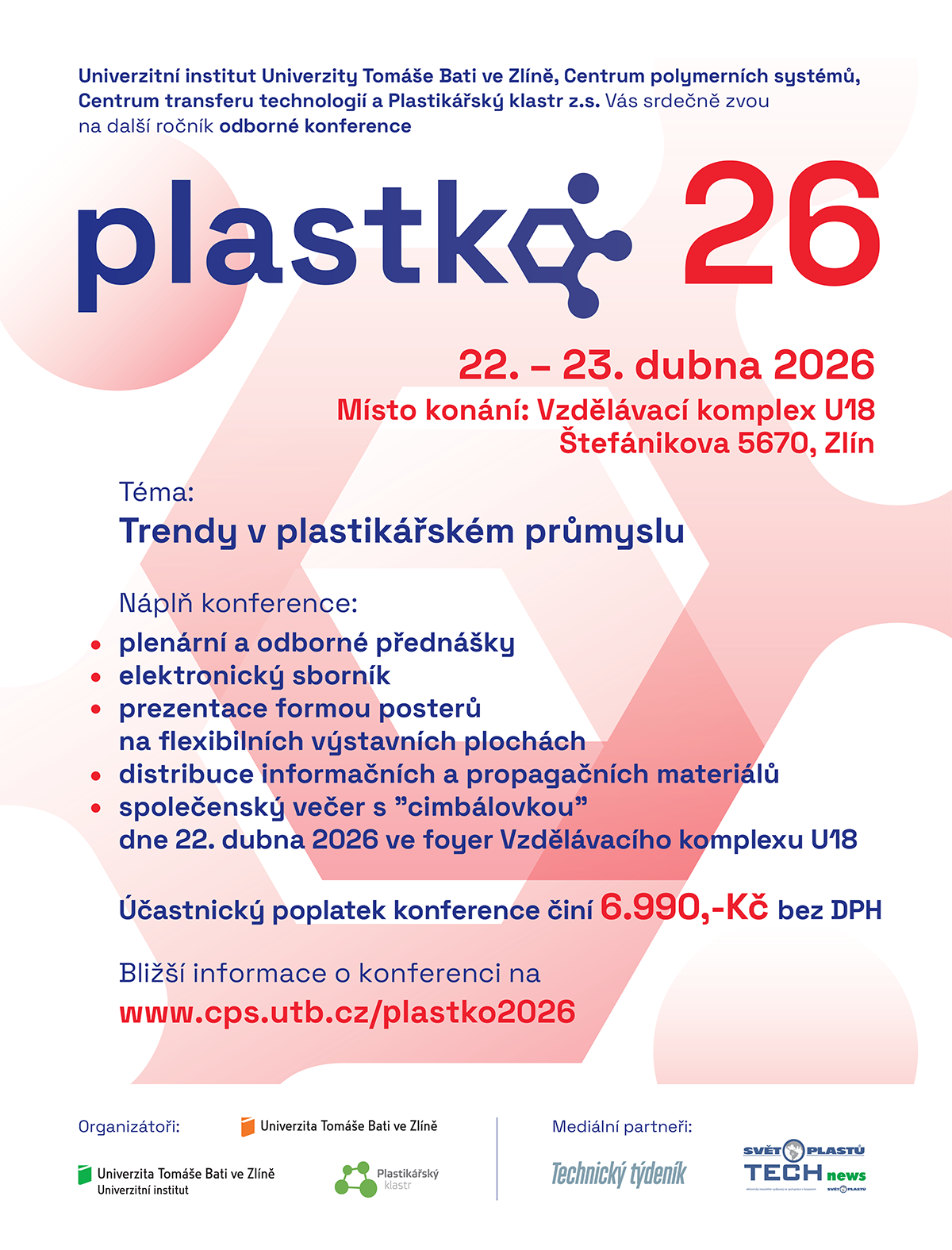 Podrobnosti k programu a registraci najdou zájemci na stránce cps.utb.cz/plastko2026/program-plastko.
