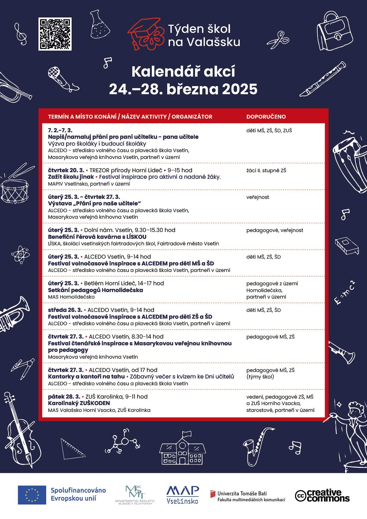 10. února 2025Kampaň Týden škol na Valašsku propojuje školy, rodiče, žáky i veřejnost a podporuje pozitivní obraz škol a školských profesí. Akce vyvrcholí v týdnu od 24. do 28. března 2025, kdy se v regionu uskuteční dny otevřených dveří, komunitní setkání, tematický čtenářský festival, festival volného času, benefiční férová kavárna a další akce, do kterých budou zapojeny mateřské a základní školy na Vsetínsku.