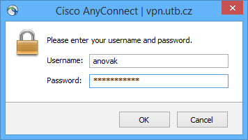 - Adresa VPN serveru: vpn.utb.cz