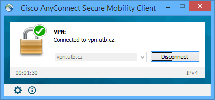 VPN připojení používejte vždy, jen pokud potřebujete přistupovat do sítě UTB. Poté se odpojte, jinak by Váš provoz do internetu zůstal směrován přes síť UTB a přístup k některým internetovým zdrojům případně zdrojům Vaší lokální (domácí) sítě by Vám tak nemusel správně fungovat.